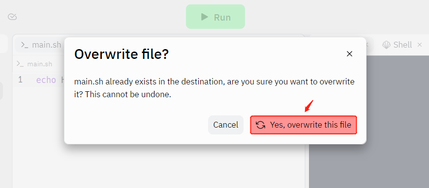 4、等待文件上传完成,大约需要2分钟左右,当出现 Overwrite file 时,选择 Yes,overwrite this file 。