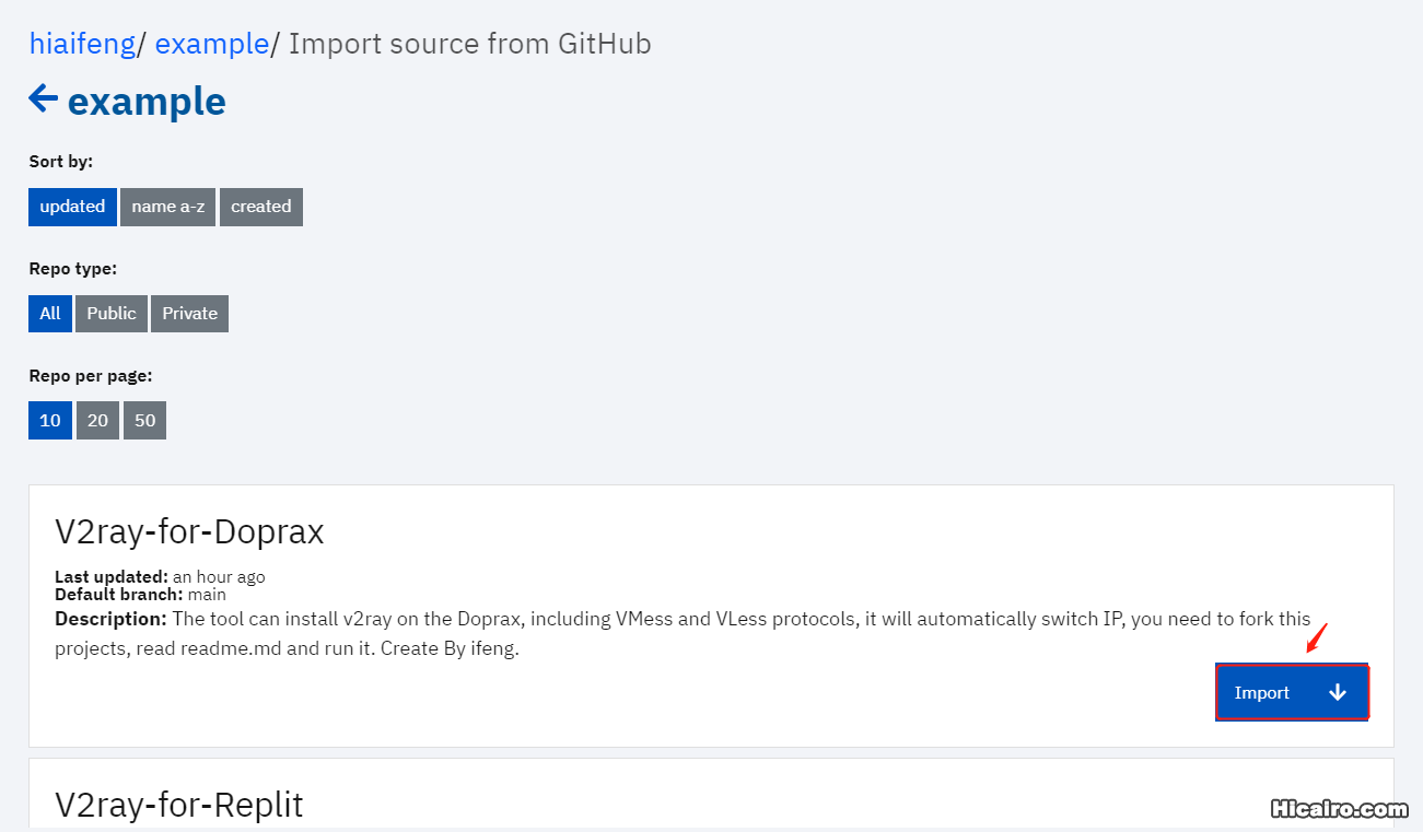6、授权成功后,再次点击左侧菜单中的 Dashboard ,然后点击右侧的 APP name ,然后点击 Import from my GitHub account 按钮后,选择 Import 进行导入。
