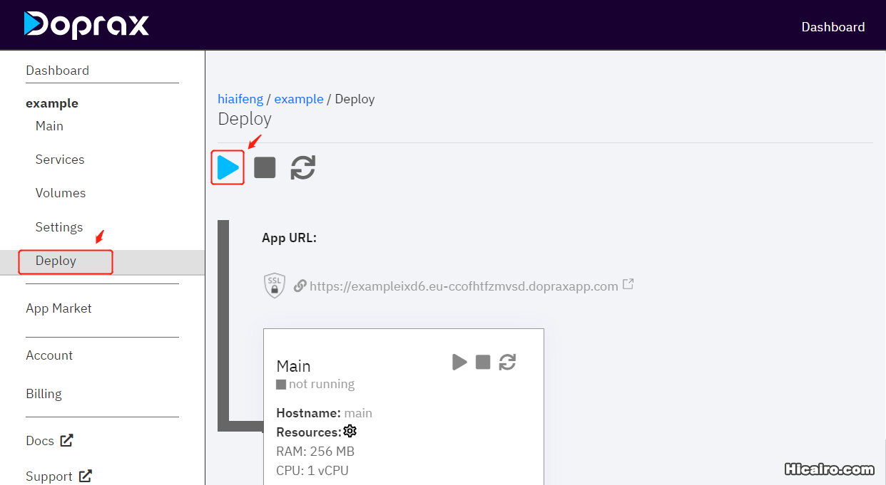 3、再次点击左侧菜单中的 Deploy,然后重新启动 APP。